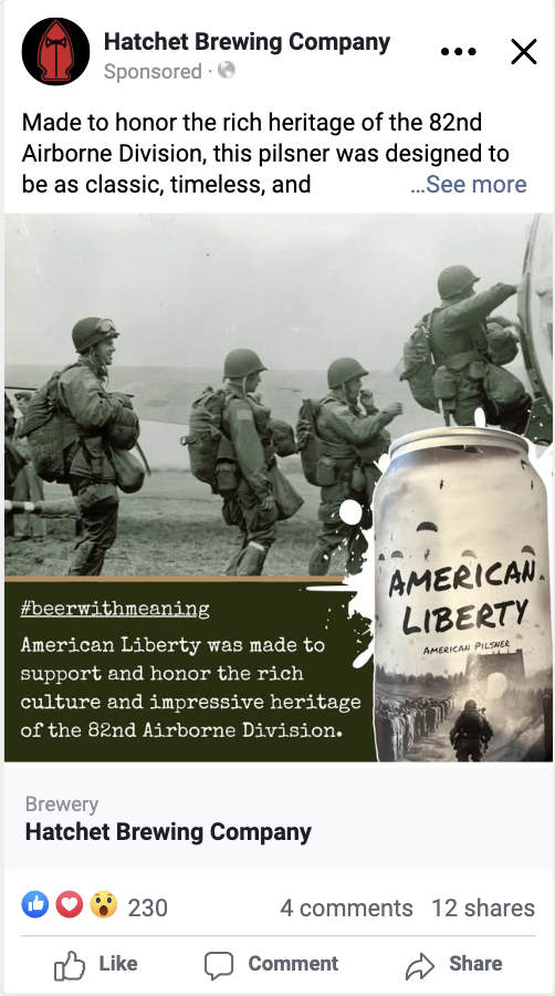 Tap Into Military Brand Positioning: The brewery also has a strong connection to the military community. It's veteran-owned and they even name several of their beers after historical military events. We created a series of ads showcasing these beers and telling the story behind the name. This created a strong emotional connection with the end-consumer.